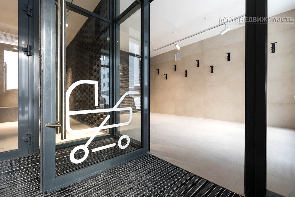 На первом этаже, оборудована колясочная зона.